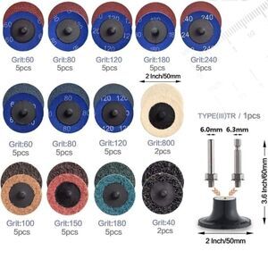 New- Still in the Plastic LOT OF 2 NYXCL 60 Piece Roloc Sanding Discs Sets- 2" Quick Change Sanding Discs with 1/4" Holders, Die Grinder Surface Conditioning- Burr, Rust, Paint Removal