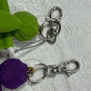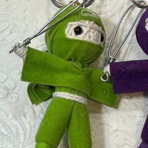 TWO Ninja String Doll Keychain Toys w/Swords Purple/Lime Green 2.5" x 3" NEW