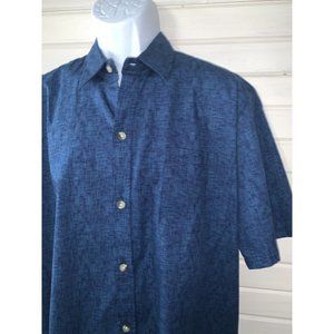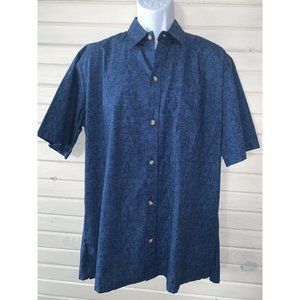 TWO PADDLES Sz LARGE 100% Cotton Blue Subtle Print Hawaiian Shirt EUC
