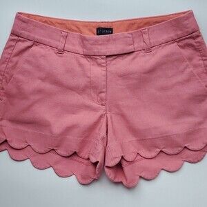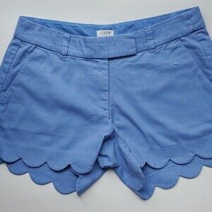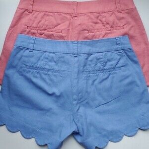SET OF 2 J. CREW SCALLOP HEM LINEN COTTON SHORTS BLUE PINK SZ 4