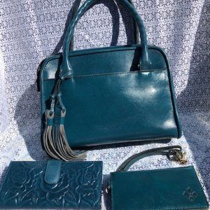 BOTH HANDBAGS ARE LIKE NEW, BEAUTIFUL AND COMFORTABLE. TOP ZIPPER CLOSURE. ROLLED HANDLES, SHOULDER STRAP. INTERIOR: MANY SLIP AND ZIPPER POCKETS. EXTERIOR: 2 LARGE SLIP POCKETS FRONT AND BACK. ACCESSORIES: ROSE TOOLED MATCHING NAZARI WALLET AND ROSE TOOLED CREDIT CARD HOLDER WITH ZIPPER CLOSURE AND MANY CREDIT CARD SLOTS.