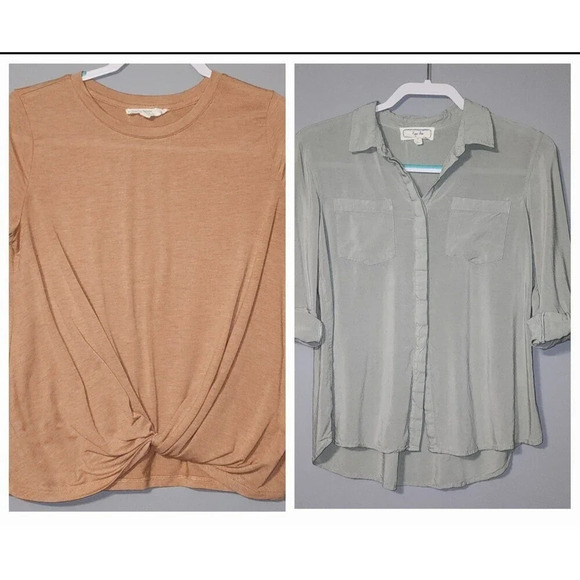 Second blouse is a mint colored button up in size small, but this is a big small and fits more like a medium.