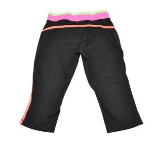 Two pairs of girls leggings, size large, both black and one with neon details.