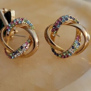 TWO Pairs Triangle Knot Rhinestone Goldtone Knot Post Earrings
