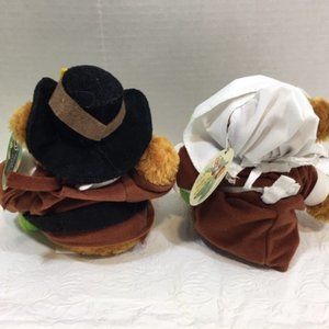 Pilgrim Beanie Stuffed Teddy Bear Couple Holding Corn Thanksgiving Fall PLUSHLAND