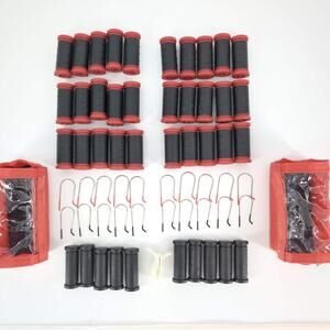 TWO (2) Remington H-1015 Compact Ceramic Ionic Hot Rollers Curlers Travel Sets of 10 Rollers, 2 Sizes, each AND TEN (10) LARGE 1¼" Red Rollers