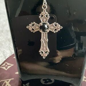 Silver cross necklace with black center stone