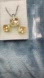 TWO TONE CHAMPAGNE CRYSTAL SQUARE PENDANT BOX CHAIN NECKLACE & EARRINGS