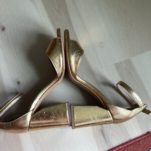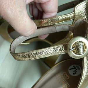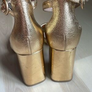 TWO TWIN HEARTS kristy ankle strap block heel in gold