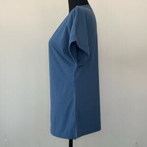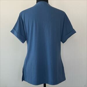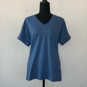 ⭐️ TWO ⭐️ V-neck Cuffed Short Sleeve T-Shirts SMALL Blue and Green Side Slit