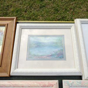 TWO WOMEN WATCHING SAILBOATS ON A SERENE LAKE PRINT IN IVORY WOOD FRAME WITH TWO MATS FOR SALE FOR $30 - Two women watching sailboats on a serene lake print in ivory carved wood frame with ivory and blue mats and glass. There are also two matching framed prints of a boy and a girl each painting with an easel with ivory and blue mats for sale in My Closet.