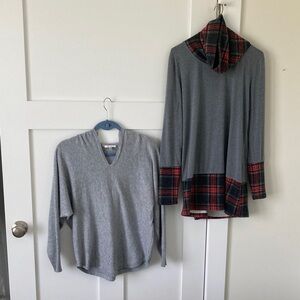 TWO items: Milano Gray V-Neck Woman’s Sweater with hood & a V Neck.