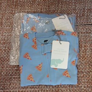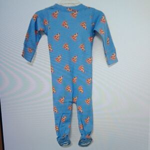TWO MONICA + ANDY FOOTED ONE PIECE PAJAMAS PIZZA ON LIGHT BLUE 6-9 MONTHS