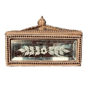 TWO'S COMPANY Handmade Ornate Beveled Mirrored Trinket Box 4.5”x 4.5” Gold Tone