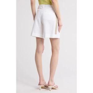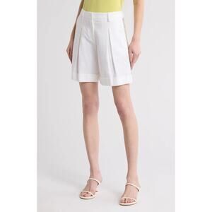 Elevate your look with these high-waist embellished shorts featuring sparkling bead detailing, front pleats, and trouser-style pockets. Crafted from a luxe linen-organic cotton-lyocell blend for breathable comfort and structure. Perfect for special occasions or polished summer styling.