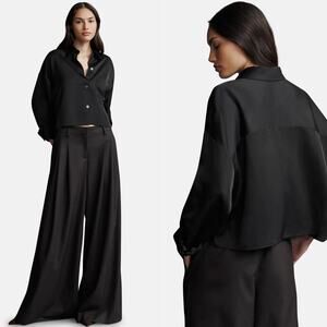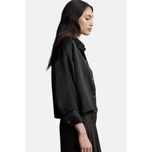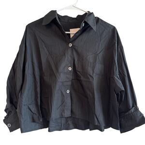 TWP Soon to Be Ex Top in Black. Size XS / S / Extra Small / Small. Features exposed button up placket, chest patch pocket, long sleeves with single roll button cuffs, cropped, relaxed fit, dropped shoulders. 100% cotton. Excellent condition, no flaws.