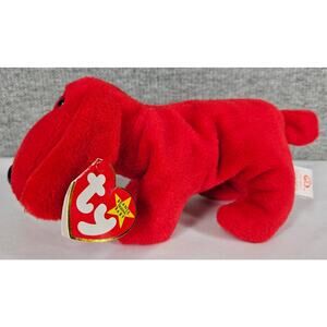 Add a pop of vintage charm with this original 1996 Ty Beanie Baby—Rover the Red Dog! This retired plush features vibrant red fur, floppy ears, and classic black button eyes. Stuffed with PVC pellets and sporting its original swing tag, Rover is a nostalgic gem for collectors and Beanie Baby enthusiasts. Whether you're curating a retro toy shelf or gifting a piece of the '90s, this pup is ready to play!