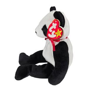 Bring good luck home with Fortune the Panda, a classic 1997 Ty Beanie Baby! This adorable black-and-white bear features soft plush fur, bright eyes, and comes with its 5th generation swing tag—complete with the original poem and December 6, 1997 birthdate. A beloved piece from Ty’s late-'90s lineup, Fortune is filled with P.E. pellets and handcrafted in China. An essential addition for any vintage Beanie Baby collector or panda enthusiast.