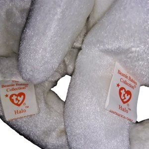 Pre-loved lot of 2 Ty Halo beanie babies, 1w/tag 1w/o; in good condition. Please see photos for Halo's general loved condition and tush tag errors.