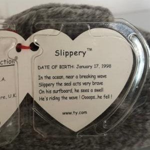 SLIPPERY NO RIPS, TEARS, OR STAINS ON BEANIE OR TAGS