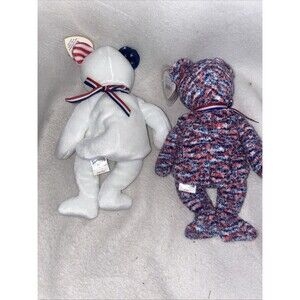 TY Beanie Babies Bears Fourth of July Red White Blue USA & America Rare 2000