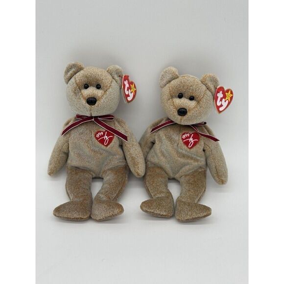 TY Beanie Baby 1999 The Signature Bear Stuffed Animal Toy NEW LOT OF 2