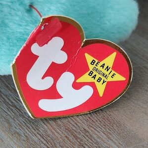 Meet Hippity β the charming aqua-colored bunny from TY's classic Beanie Baby line. Released in 1996, this adorable plush features ultra-soft fur, a pastel green hue, and a delicate ribbon around its neck. A must-have for collectors and a cuddly companion for all ages!