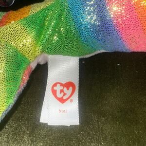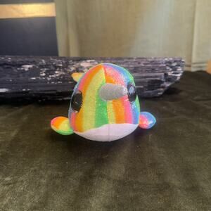 This adorable vintage Ty Beanie Baby is Nori the Rainbow Narwhal. Made from soft velvety fabric with shiny rainbow stripes and a glittery silver horn, Nori is a rare find from the early 2000s. This Beanie Baby is in excellent used condition with the original sewn Ty tag intact. A perfect collectible for Beanie Baby fans or anyone who loves unique plush animals. Add a splash of color and nostalgia to your collection with Nori, the magical rainbow narwhal!