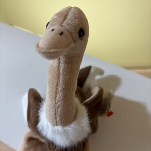 The TY Beanie Baby STRETCH the Ostrich is a collectible plush toy produced by the brand Ty in 1997. Made in China, this Beanie Baby is recommended for ages 3 and up. With its unique design and soft material, this toy is perfect for young children who love adorable and fun stuffed animals. The nostalgic appeal of the brand and the charm of the ostrich character make it a popular choice for collectors and kids alike.