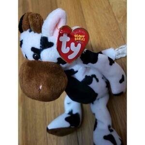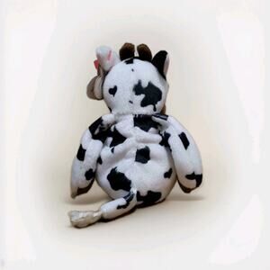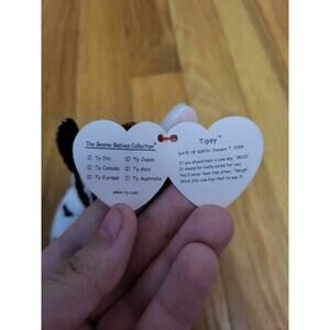 Bring home a classic piece of nostalgia! This is Tipsy the Cow from the Beanie Babies Collection by Ty Inc. β born January 7, 2004, and now retired. Tipsy features a soft plush body with black-and-white cow spots, brown hooves, and a yarn tail. Comes with both original swing and tush tags attached.