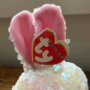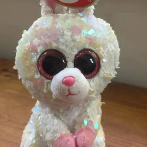 TY Beanie Boo Flippables | Bonnie Easter rabbit Sequin Beanie 7" white and pink