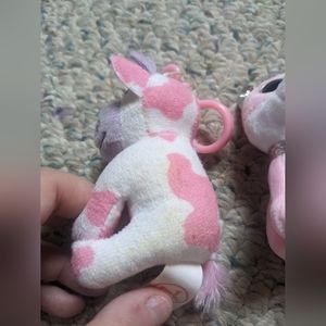 Two TY Beanie Boo Keychains. One is a pink cow, and the other is a pink cat. They both have tags, and the cow has a slight yellow stain which could come out just with water (the stain was there when I got them).