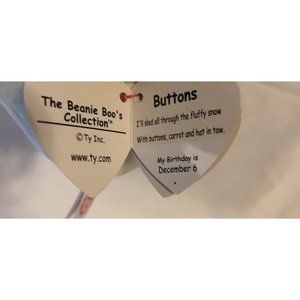 TY Beanie Boos 6" Buttons Snowman Plush Stuffed Animal Toy Heart Tags NEW