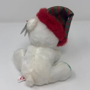 • Color: White fur with green paws, red & green glitter hat, red fuzzy trim