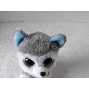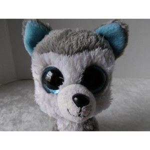 Color: light gray, white, baby blue ears and eyes are glitter baby blue