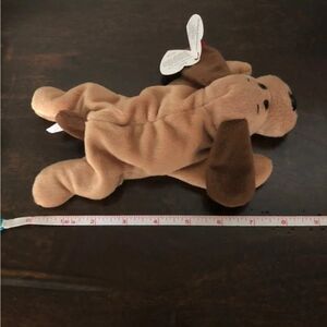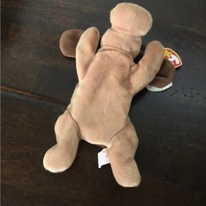 NWT and in excellent condition, from clean nonsmoking home. TY Beanie Baby collectible brown dog “Bones.”