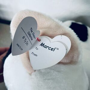 TY Beanie Baby plush black and white spotted Frenchie dog stuffed animal. Classic Collection “Marcel”. Excellent condition, tags intact.