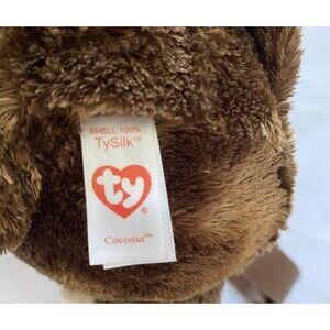 TY brown monkey plush backpack made of 100% Tysilk material. Features adjustable straps, plush body, and signature branding. Fun, whimsical accessory for kids or fans of TY collectibles. Great for everyday wear or display.