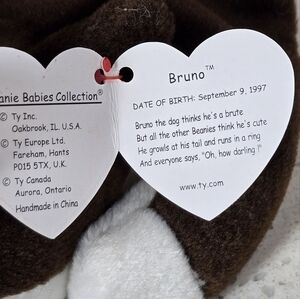 TY - Bruno - Beanie Baby Brown and White Dog Plush