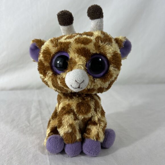 TY Safari giraffe plush, small 6-inch stuffed animal with distinctive purple eyes.