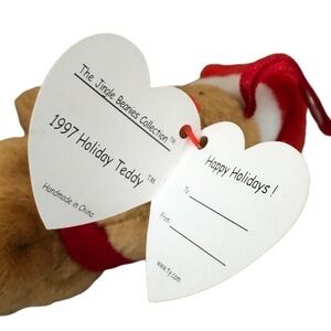 TY Handmade The jingle Beanies Collection 1997 Holiday Teddy O/S Brown Red ♡