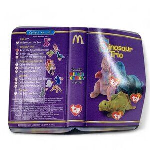 Vintage 2000 "Rex" The Tyrannosaurus Rex Beanie Babies plush toy in collectible display box. Rex is a lovable 4" red dinosaur. Produced in collaboration with McDonalds. NWT condition, in original, unopened packaging. Photos are part of the description, please zoom in for more details.