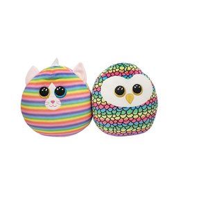 TY OWEN the Owl and Heather the Squish-A-Boos Pillows - Super Soft Stuffed Toy -