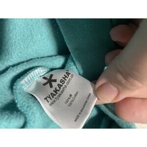TYAKASHA Teal Blue Sweatshirt Pullover Snowman Women's OS RARE! No size but measurements are in the photos. This is thick and nice. Length is a little cropped - same on sleeves.