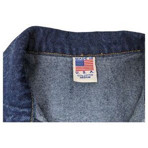Vintage Denim Embossed Blue Jean Jacket Sz Medium Embossed Guitar Tyca USA