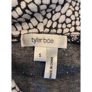Add a pop of color to your wardrobe with this Tyler Boe sweater dress. The dress features a mosaic pattern, cowl neckline, and 3/4 raglan sleeves. The pleated accents and knee-length hemline add a touch of sophistication to the dress, making it perfect for both casual and formal occasions. The dress is made from a polyester blend jacquard fabric that is machine washable, ensuring easy care and maintenance. It also comes with pockets for added convenience. This dress is a size small and is suitable for the winter and fall seasons.