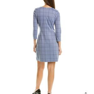 - Lani Dress in Wibdow Pane with Jacquard Design, Draped Neckline, and ¾-Length Sleeves.