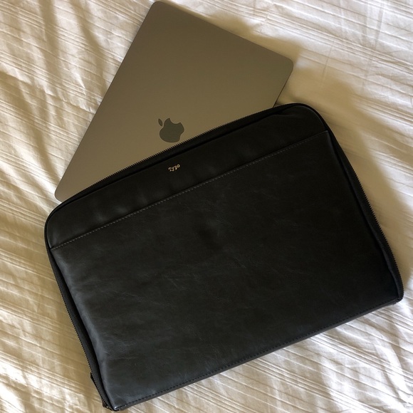 Features a pocket sleeve on the outside and a smooth zipper.