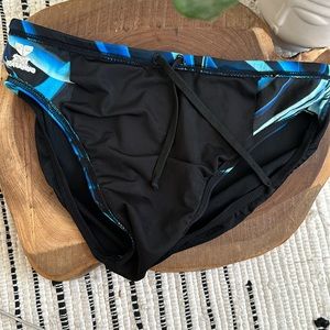 Sleek swim brief with dynamic electric blue wave pattern. Low-rise sporty cut with logo accent. Smooth, performance-ready fabric for training and racing.