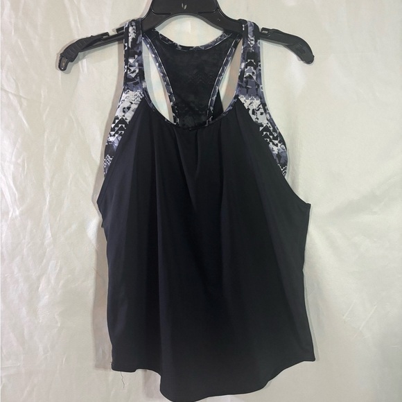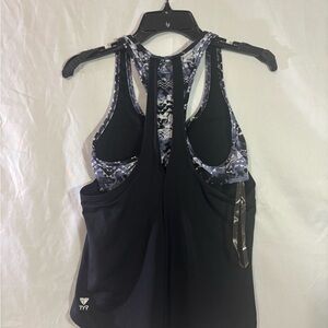 Stylish and comfortable black and gray tank top perfect for casual outings or workouts. Features a sleek design with a subtle pattern for added flair.